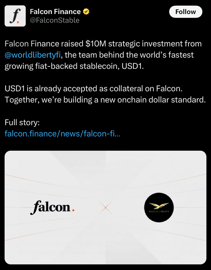 Falcon Finance raised $10M from World Liberty Financial to advance its USDf stablecoin and enable multichain liquidity