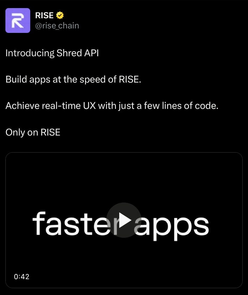 Rise Chain built Shred APl is a low latency execution layer that brings Web2 like speed to dapps