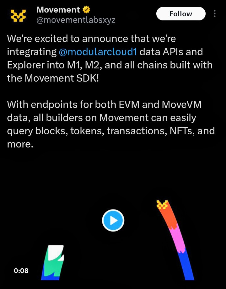 Movement labs integrating modularcloud1 node into movement SDK. Will help devs in block queries and ship better