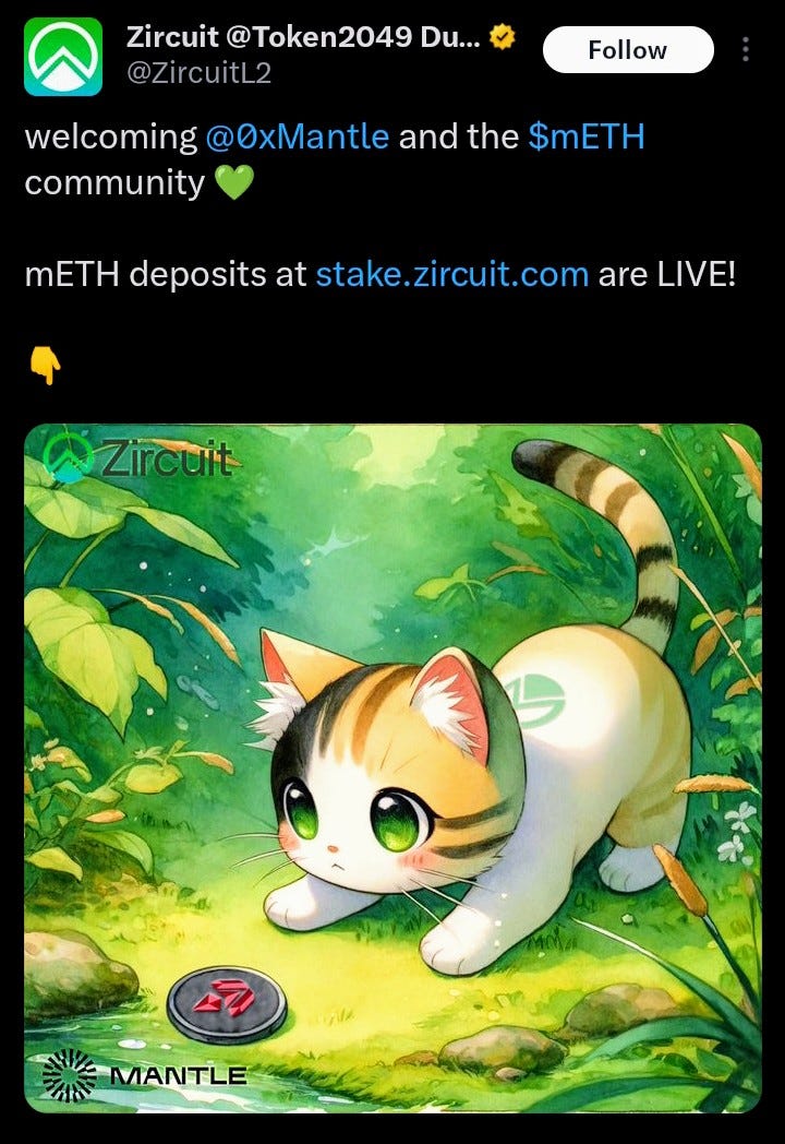 Mantle $mETH integrates with Zircuit L2, a zk Rollup with AI-enhanced security. Earn Zircuit points by staking $mETH in it