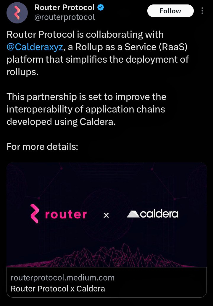 Router partners with Caldera to increase interconnectivity across Caldera chains