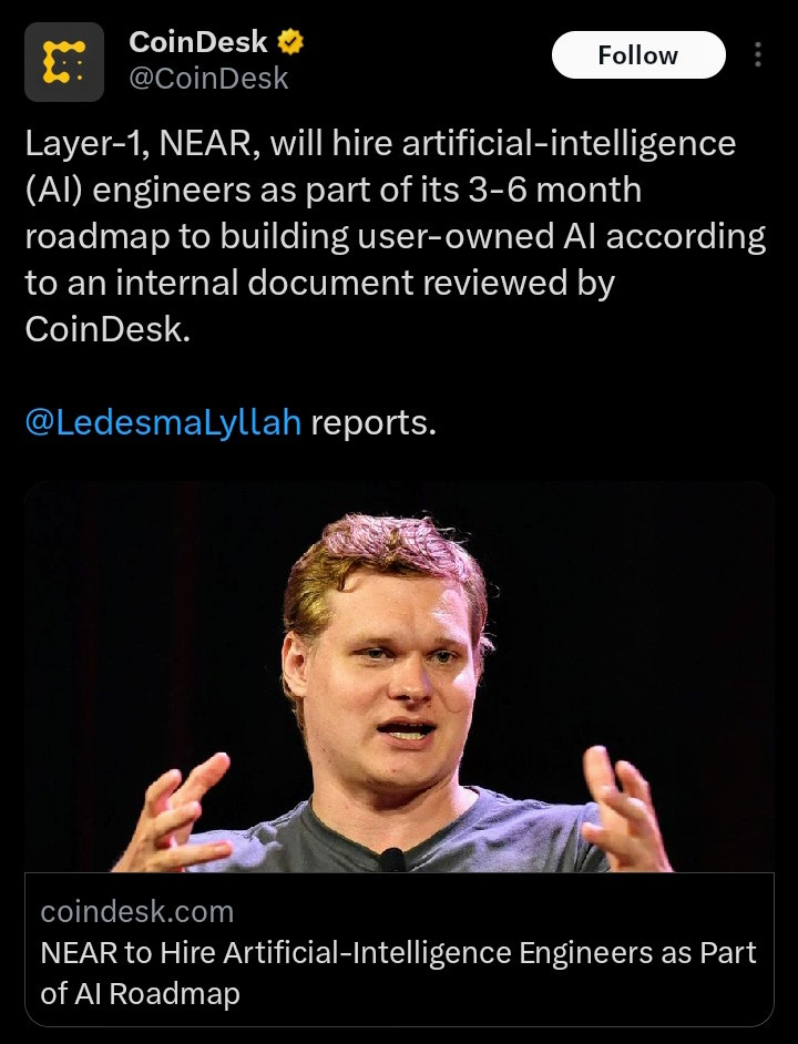 NEAR Protocol plans to hire artificial intelligence engineers to support its AI-focused roadmap