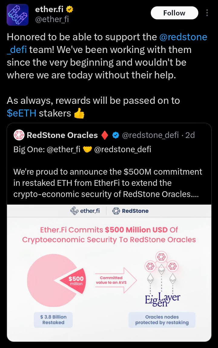 Etherfi commits $500M restated ETH to secure Redstone, oracle based Eigen AVS