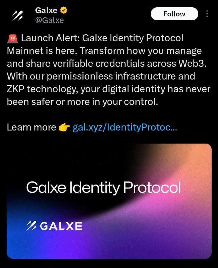 Galxe launched Identity protocol on mainnet which facilitates the creation of cross-domain pseudonymous identities, enhancing privacy and interoperability across various online platforms using zkp tech