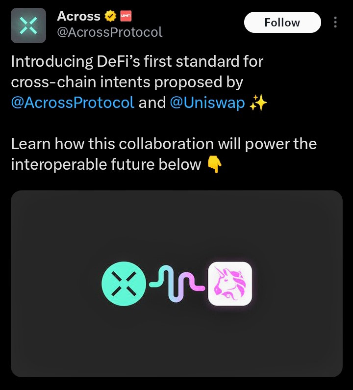 Across Protocol announced collaboration with Uniswap to propose a new ERC standard for cross-chain intents