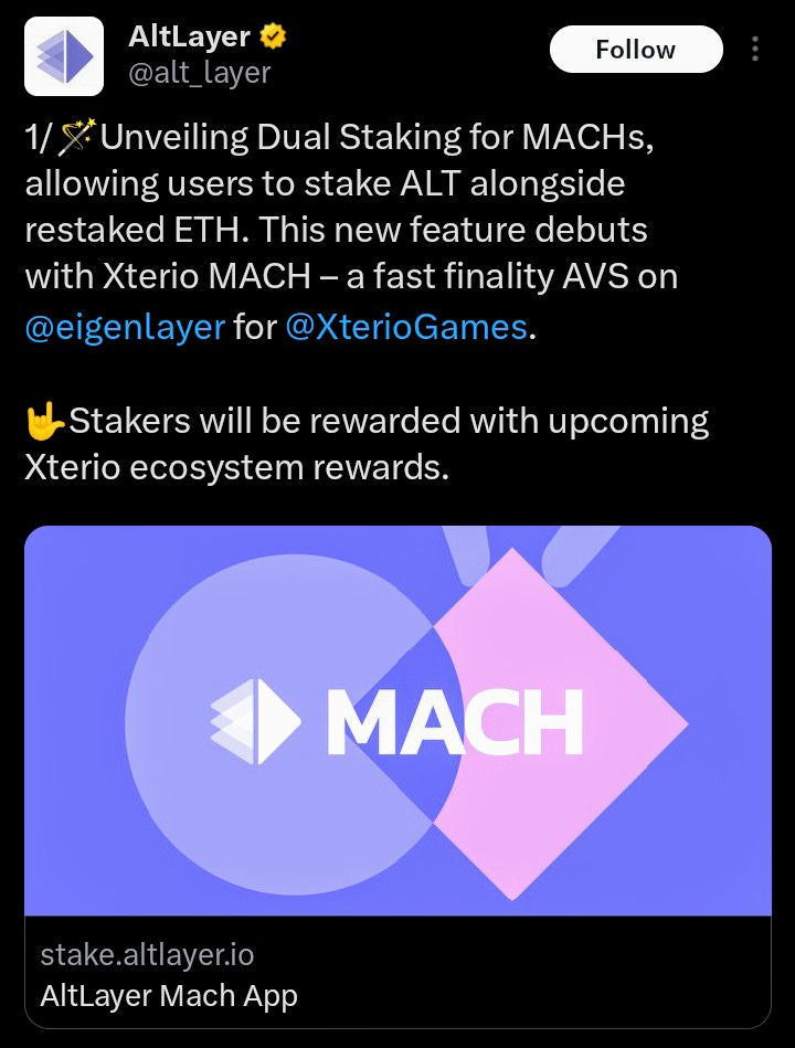 AltLayer MACH AVS has launched on Holesky testnet, marking the first AVS to operate under the re-staking Rollup framework. It’ll serve OP and Arbitrum