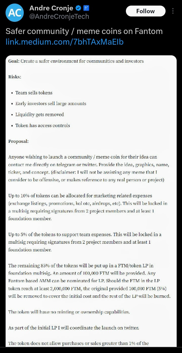 Andre Cronje proposes to assist with launch of memes on Fantom