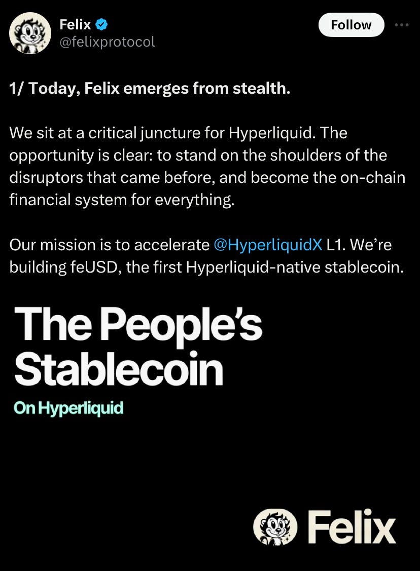 Felix protocol emerged from stealth to unveil feUSD Hyperliquid native stablecoin
