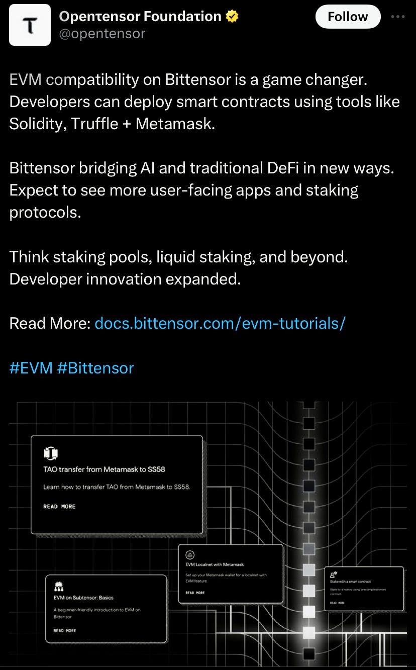 Opentensor FDN officially makes its ETH compatibility layer available on Bittensor