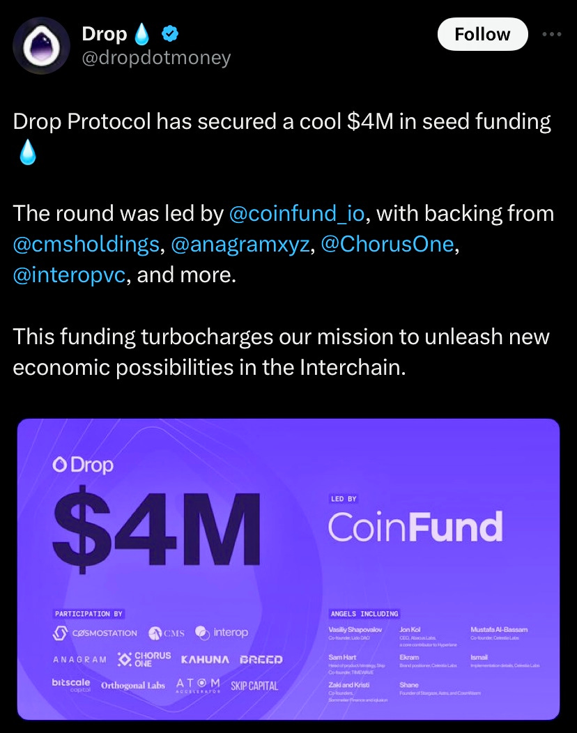 Liquid staking protocol for interchain assets, Drop protocol raised $4M in seed round led by CoinFund