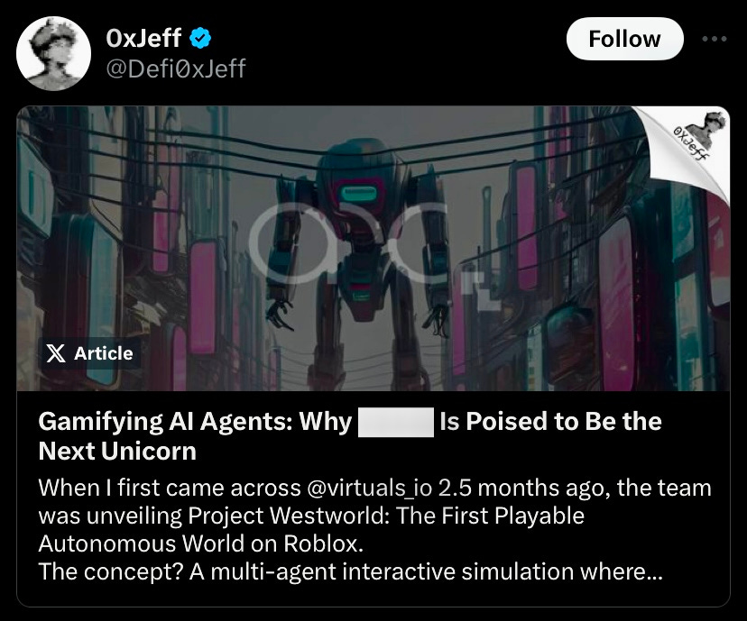 Virtuals eco caught $Virtual hitting ATH 1B. Bullish on the ecosystem