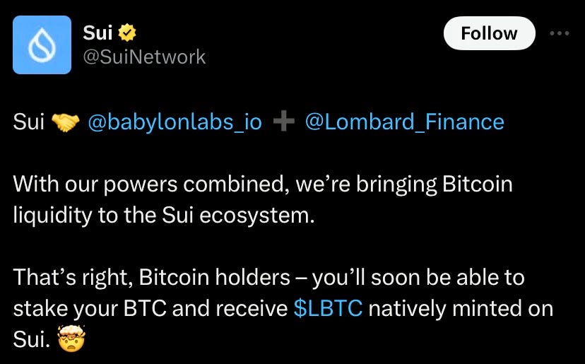 Babylon and Lombard to bring BTC liquid staking on SUI