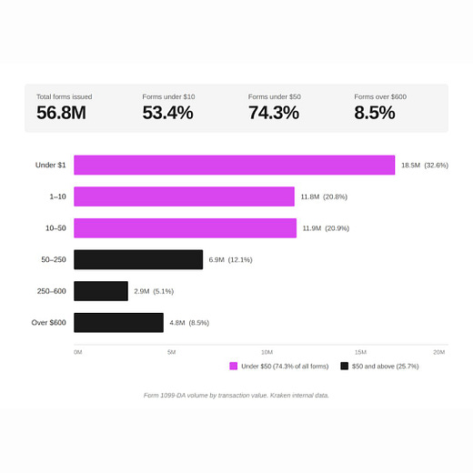 ⚡️ UPDATE: Kraken submitted 56M crypto tax forms to the IRS, many involving transactions under $10.