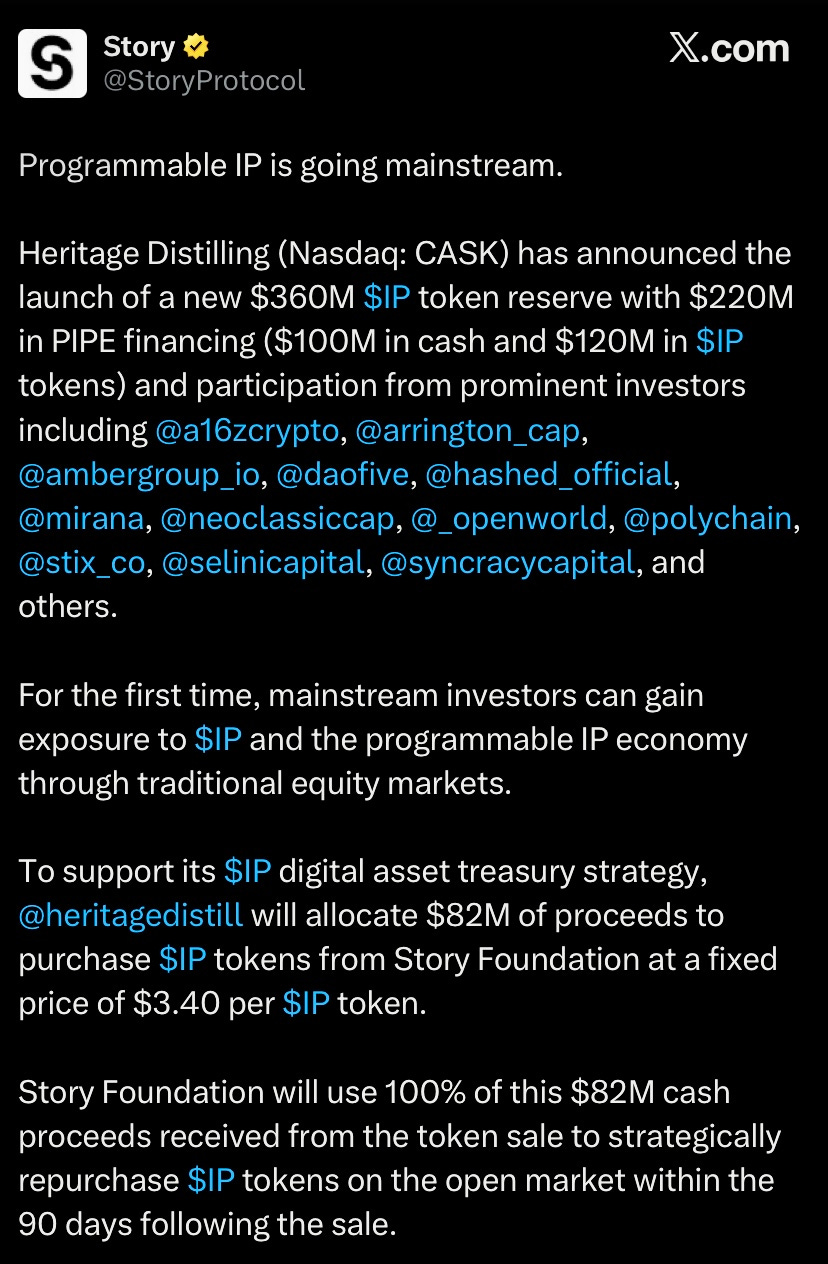 Heritage Distilling raised $220 million in pipe financing, $100M in cash and $120M in IP tokens to establish $360M IP reserve