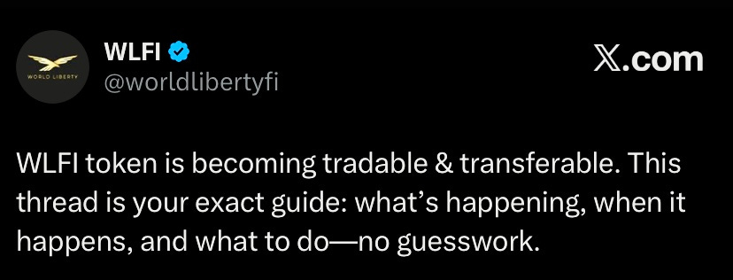 World liberty token WLFI to be trade able and transferable on ETH starting September 1