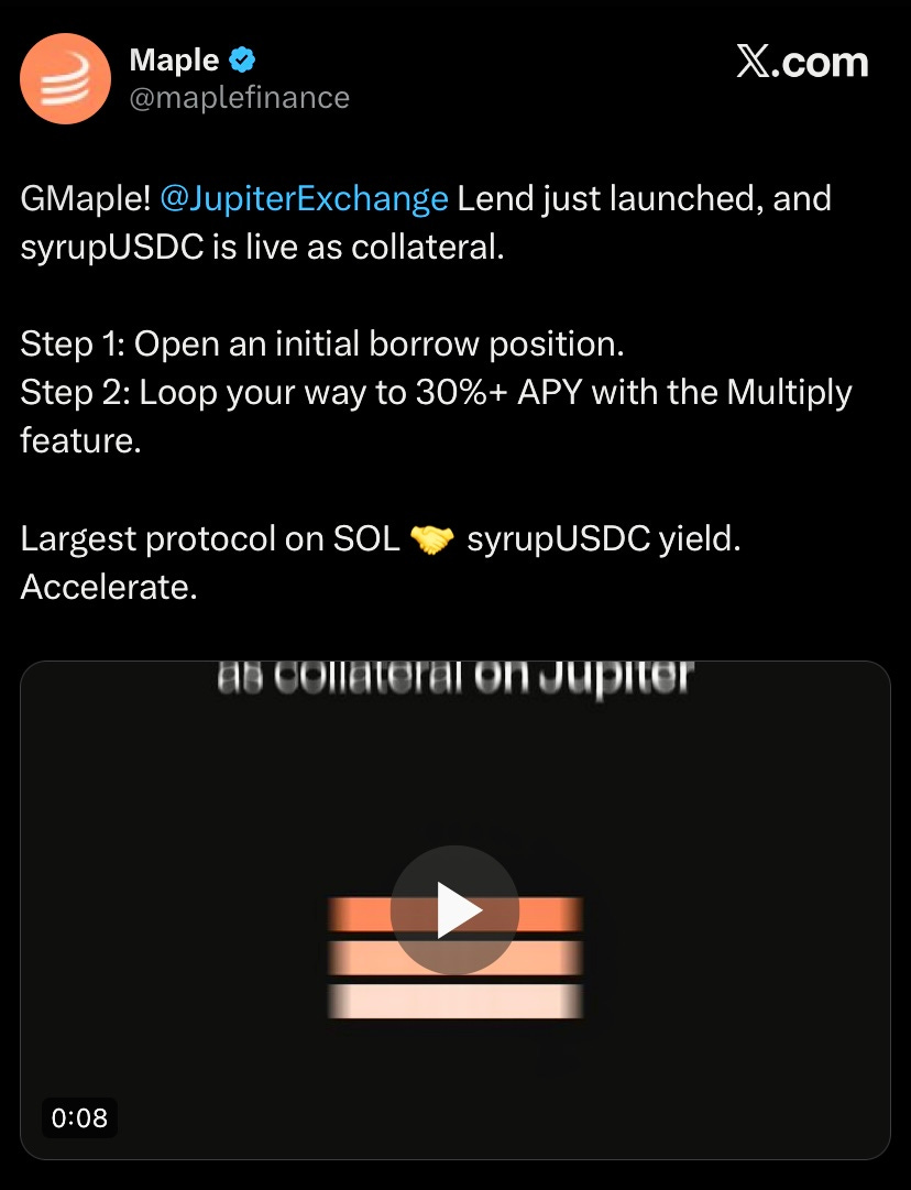 Maple’s syrupUSDC can now be used as collateral on Jupiter