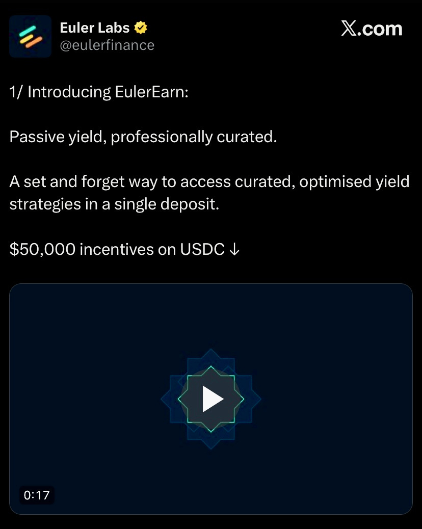 EulerFinance launches EulerEarn: single-asset vaults that autoallocate deposits across curated strategies for passive yield