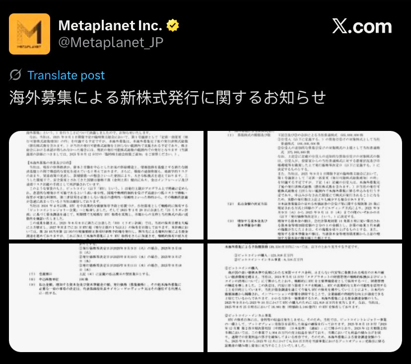 Metaplanet plans to raise $837M to buy more Bitcoin
