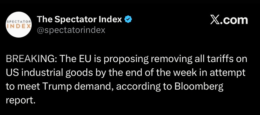 EU is proposing removing all tariffs to meet Trump’s demand