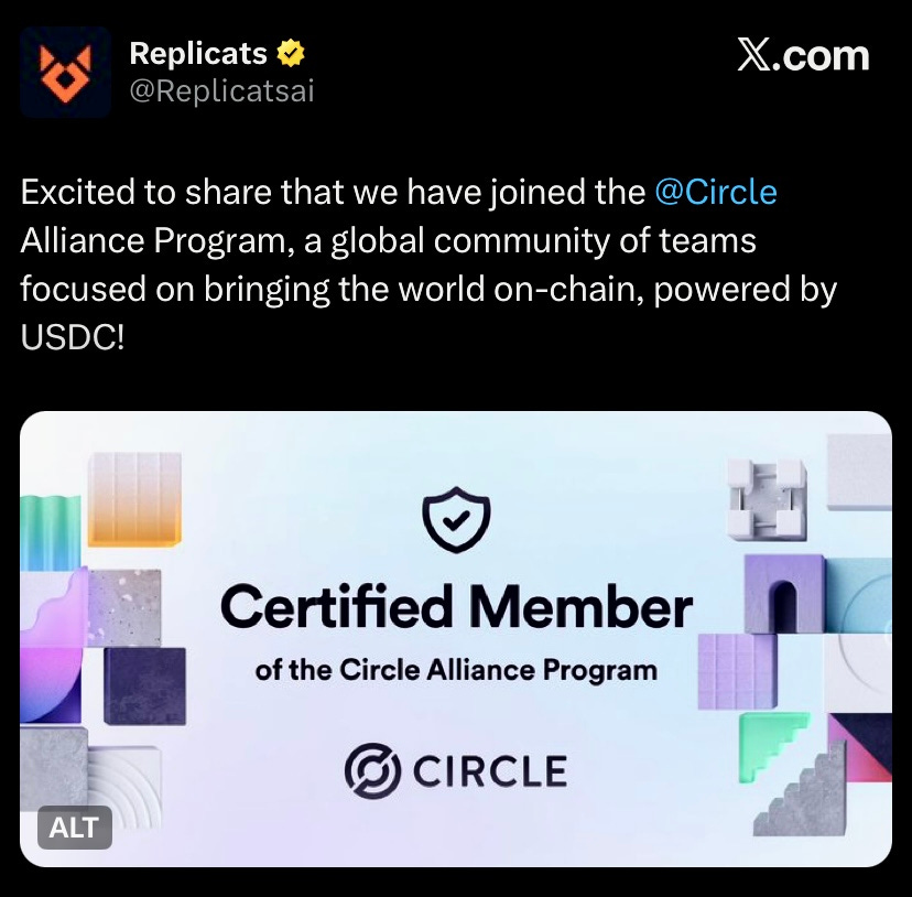 Institutional portfolio management, Replicats joined Circle Alliance Program. Token RCAT 10xs
