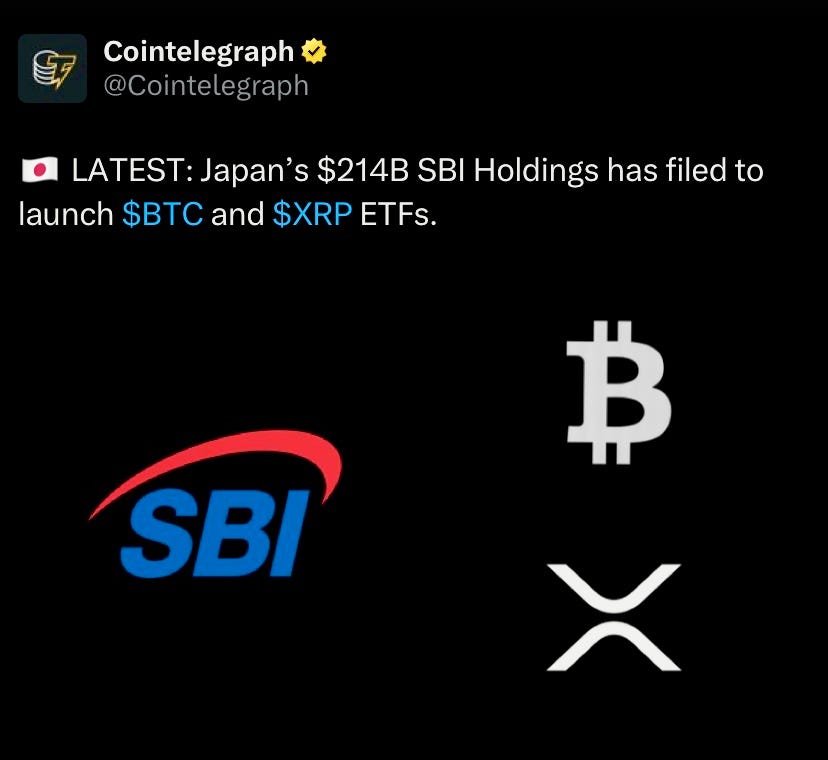 $214 Billion AUM SBI holdings filed for Bitcoin and XRP ETFs.