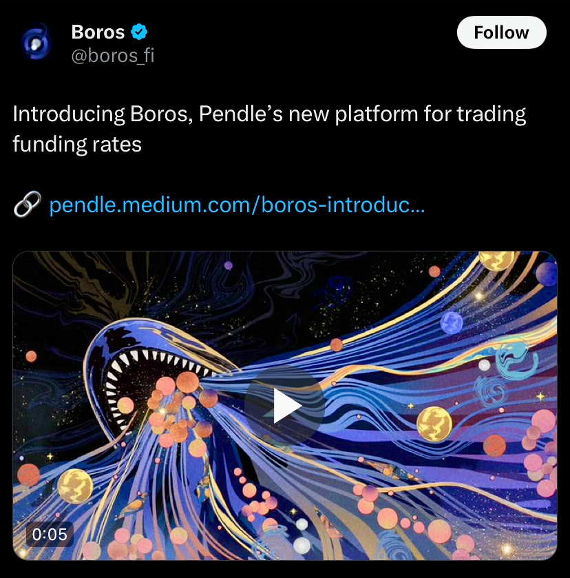 Pendle launched Boros, a platform on Arbitrum that lets users trade Yield Units: tokens representing BTC or ETH funding rate yield, to speculate or hedge on future funding rates.