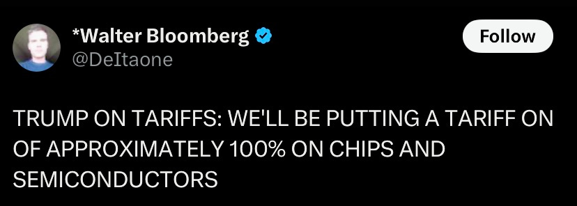 Trump is putting a 100% tariff on chips and semiconductors