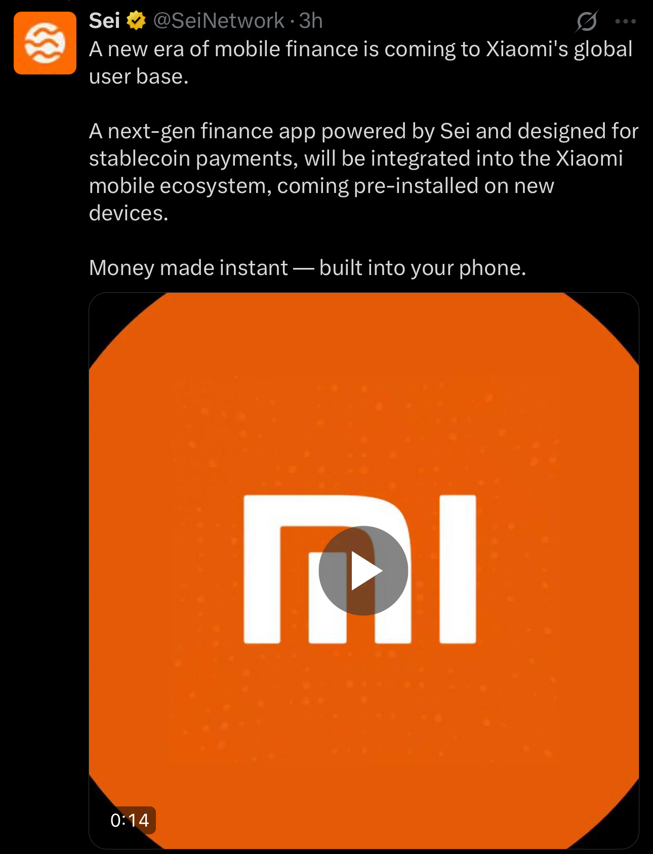 Xiaomi to integrate pre-installed Sei mobile app into their mobile ecosystem