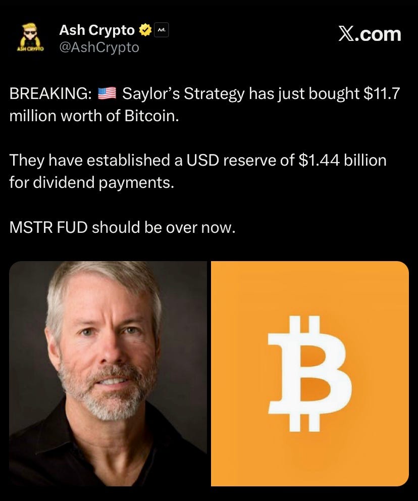 Strategy (formerly MicroStrategy) bought another 130 BTC for $11.7 million at an average of $89,960, bringing its holdings to 650,000 BTC worth about $56 billion, funded through recent MSTR stock sales as they also announced a $1.44 billion US dollar reserve to support dividend and debt payments.