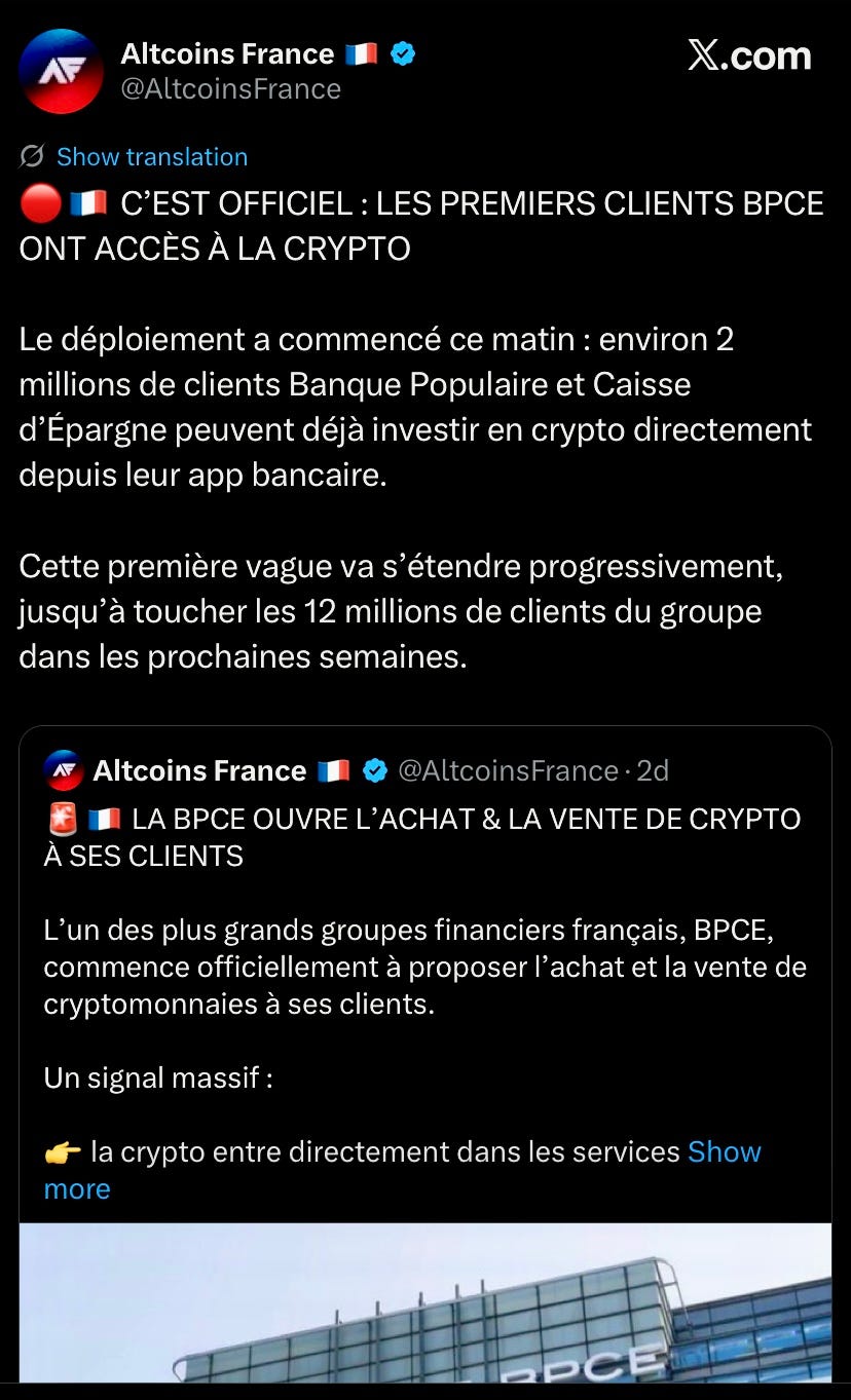 France third largest bank, BPCE enabled crypto trading for their 2M clients