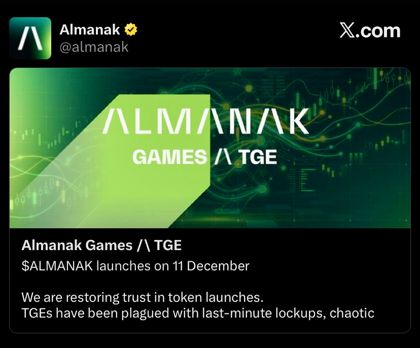 AI Agent protocol, Almanak announce tge on 11 Dec