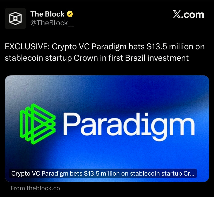 Paradigm invested $13.5M in a Series A funding for stablecoin Brazilian firm, Crown