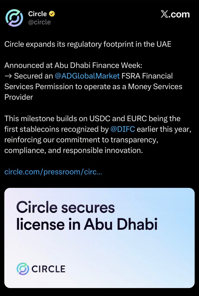 Circle secures financial services permission license from the Abu Dhabi to run as a money services provider