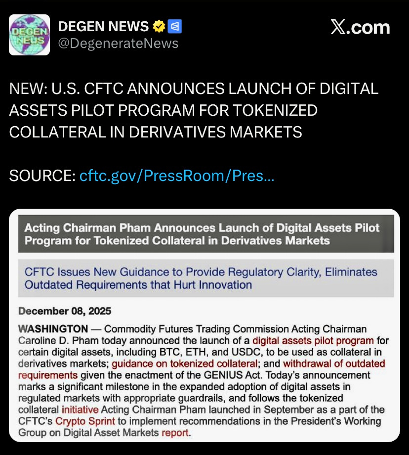 CFTC announce launch of Pilot Program for BTC, ETH and USDC to be used as collateral in derivatives markets