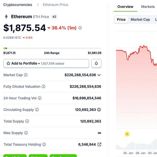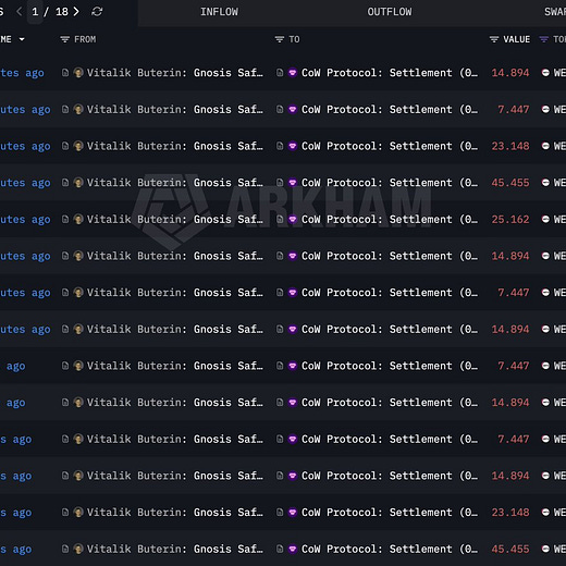 Vitalik sold 1,869 ETH $3.67M over the past two days