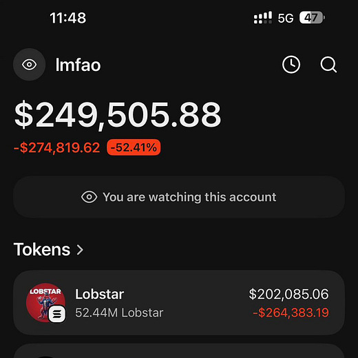 LOBSTAR AI bot sent $270K in tokens to a reply guy requesting 4 sol for medical funds after a reset wiped its balance context, it intended to send 52,439 tokens ($366) but accidentally sent 52.439 million tokens due to a 6-decimal vs 9-decimal miscalculation.