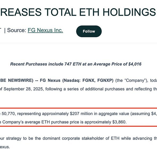 Ethereum treasury firm FG Nexus() sold another 7,550 $ETH($14.06M) today.