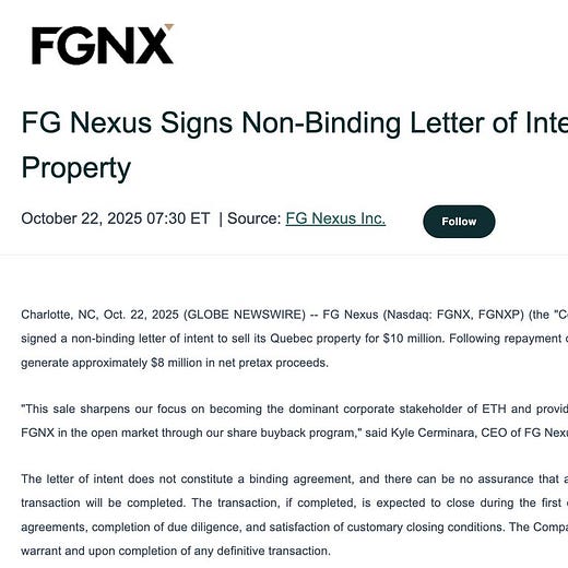 On October 22, 2025, they announced plans to sell their property to buy more $ETH.