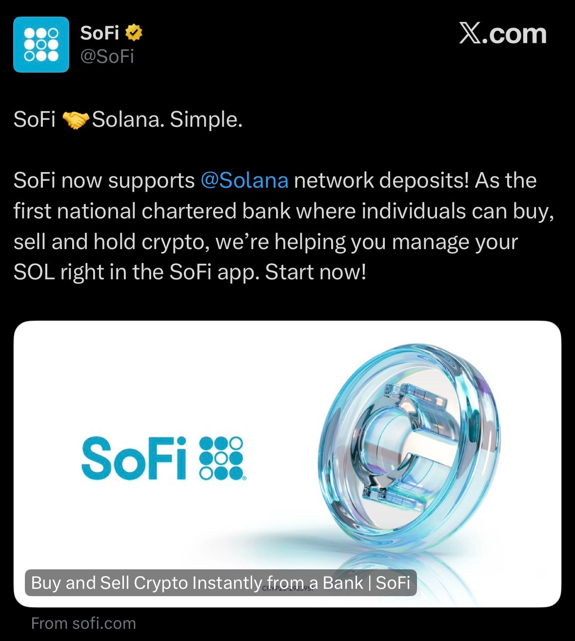 Sofi now support Solana network deposits