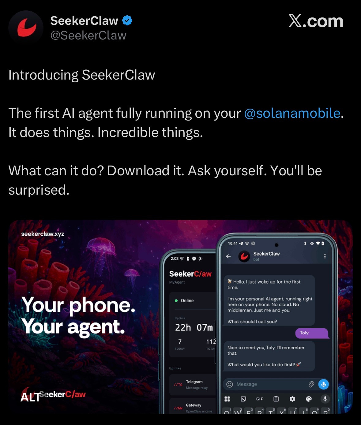 Seeker Claw launch AI agent on Solana Mobile