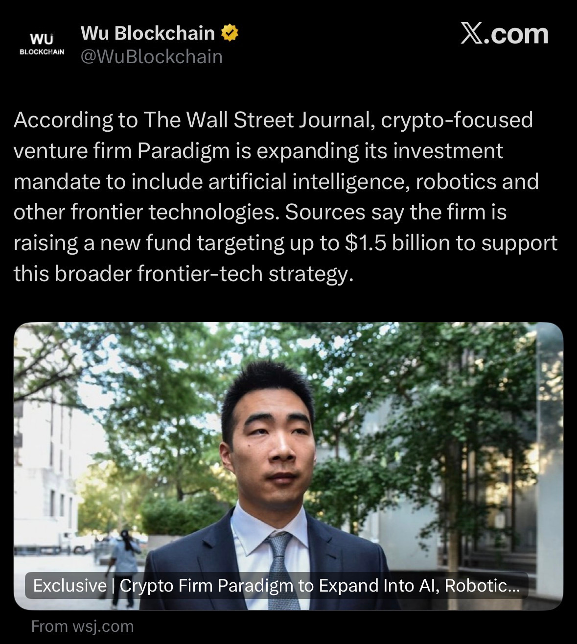 Paradigm is expanding focus from crypto to AI, robotics, and frontier tech, raising up to $1.5B for the new strategy.