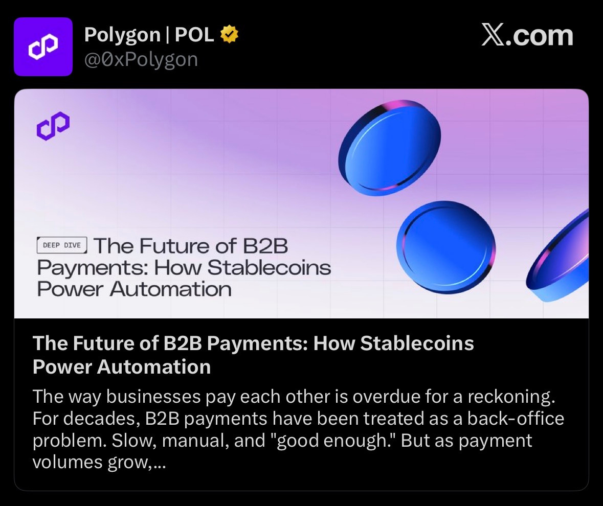 Polygon highlighted how stablecoins and its Open Money Stack can modernize B2B payments, enabling faster, programmable, and around-the-clock settlement that surpasses traditional methods like wires and ACH.