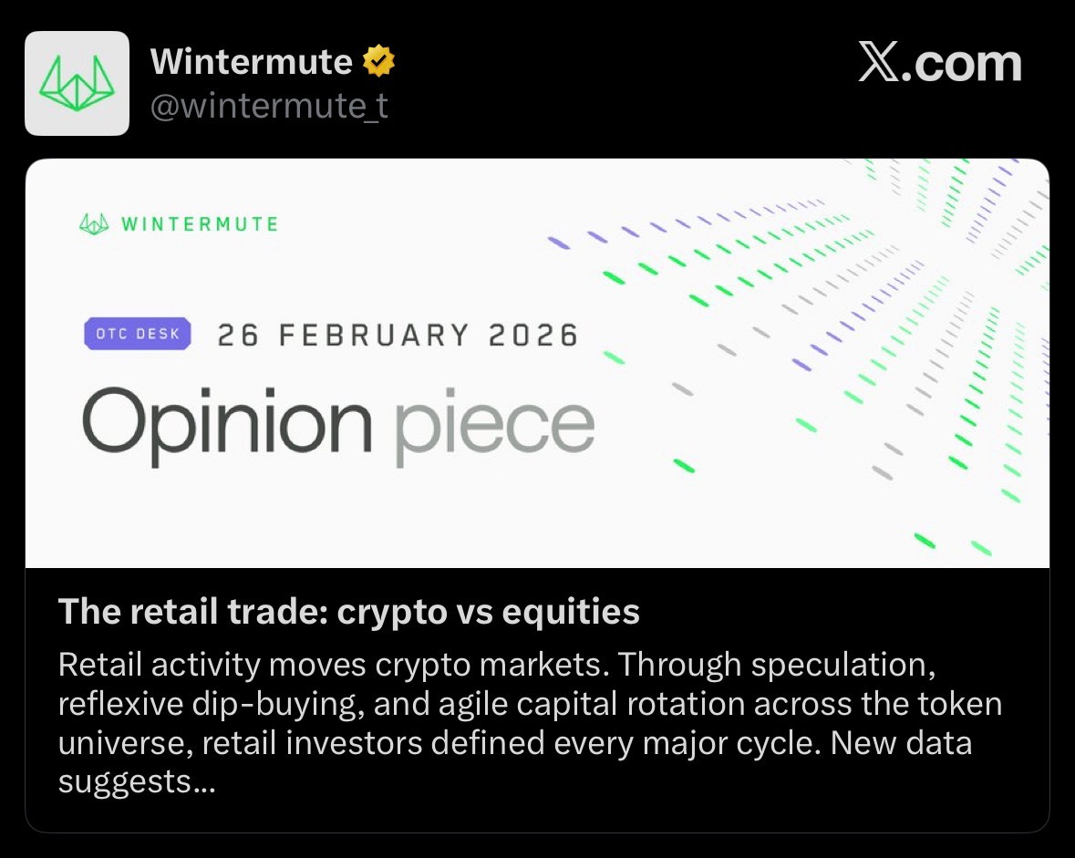Wintermute analyzed how retail traders are treating equities as substitutes for crypto, driven by volatility compression, easier capital rotation, and AI-powered advantages in stocks.