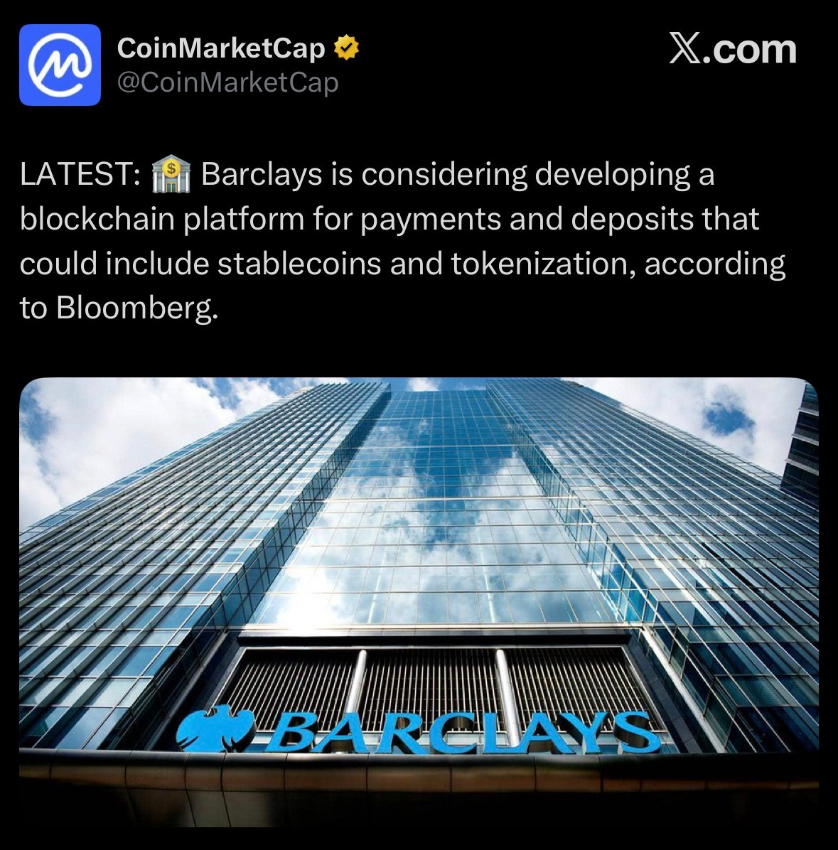 Barclays is reportedly evaluating blockchain-based settlement systems to support payments and tokenized deposits