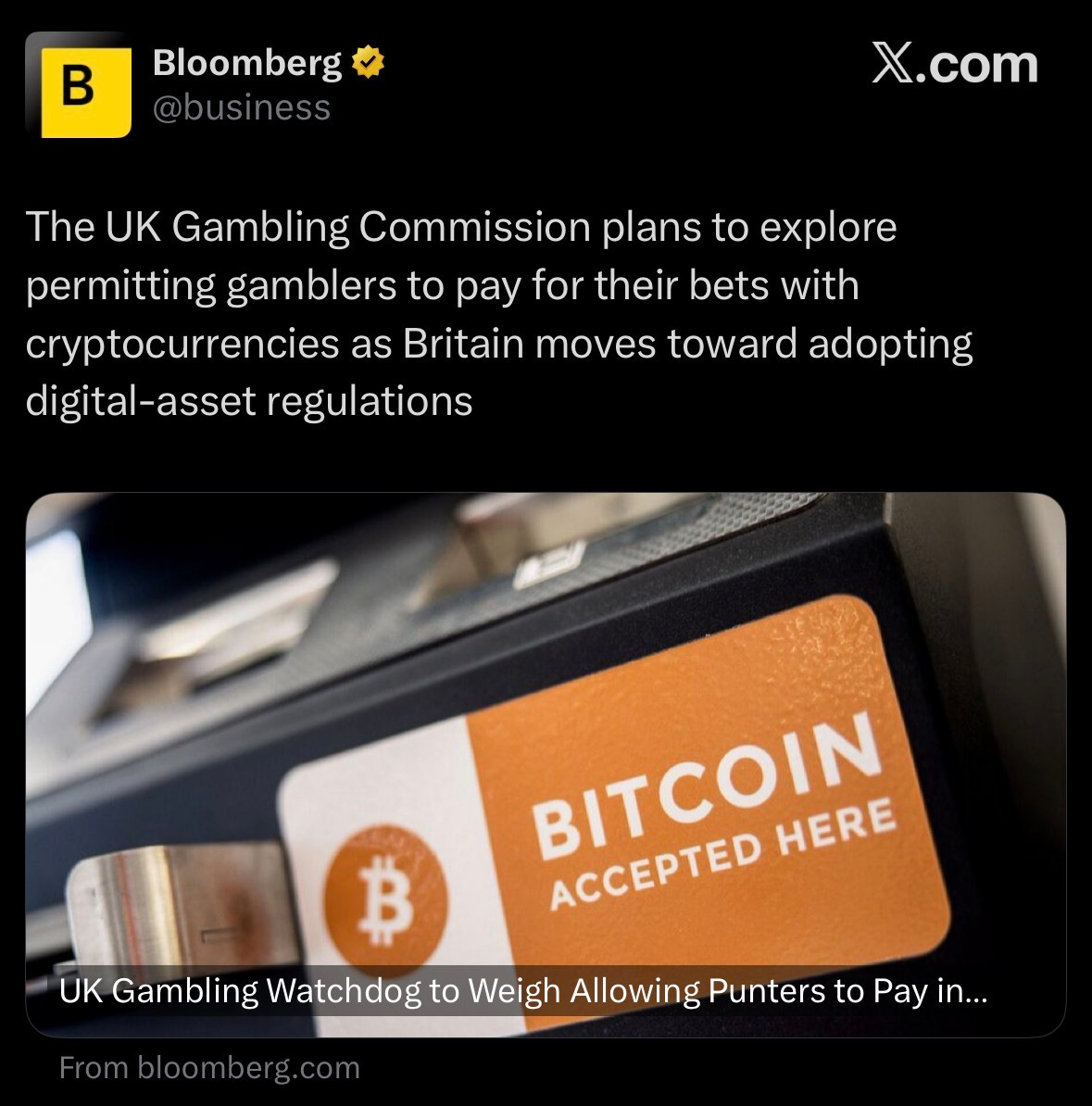 The UK Gambling Commission is considering permitting cryptocurrency payments for gambling.
