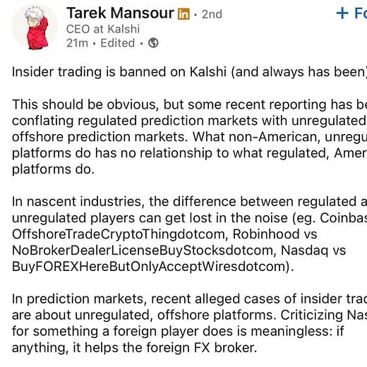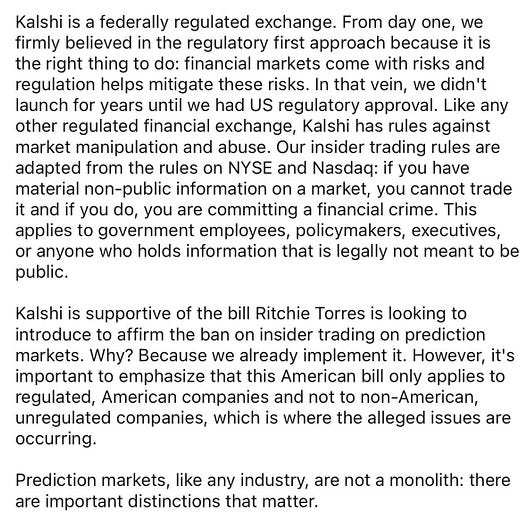 CEO Kalshi Terek Mansour expressed his support for the new bill by Rep Ritchie Torres on banning insider trading on prediction markets