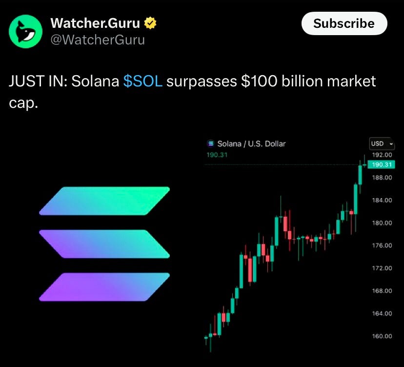 Solana surpassed $100billion market cap