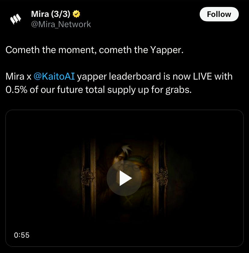 AI Trust Layer, Mira Network to soon take Kaito snapshot with 0.5% supply allocated. Mira raised $9M in seed