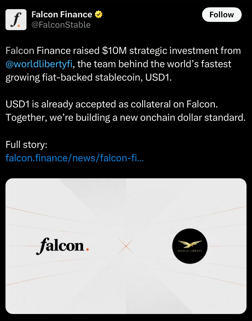 Falcon Finance secured $10M strategic investment from World Liberty Financial to boost development of USDf stablecoin