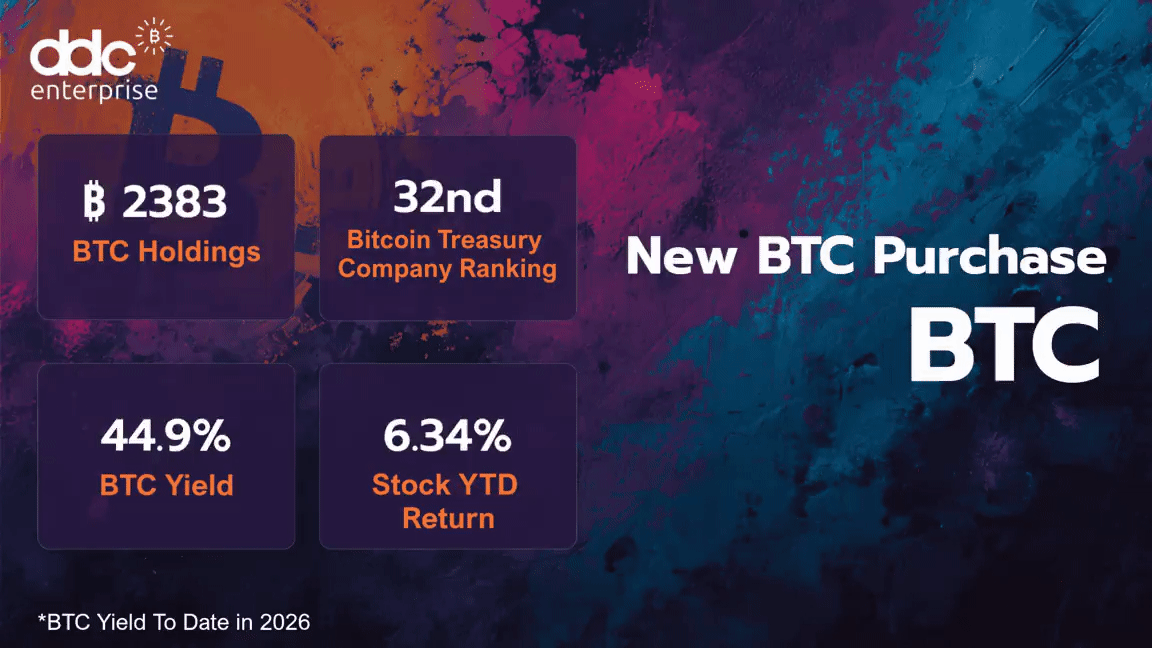 DDC Enterprise added 200 BTC, total rises to 2,383 BTC